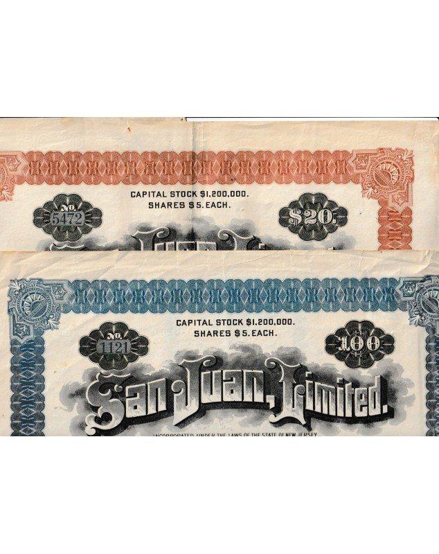 Lot of 2 certificates of 20$ and 100$ - New Jersey 1904