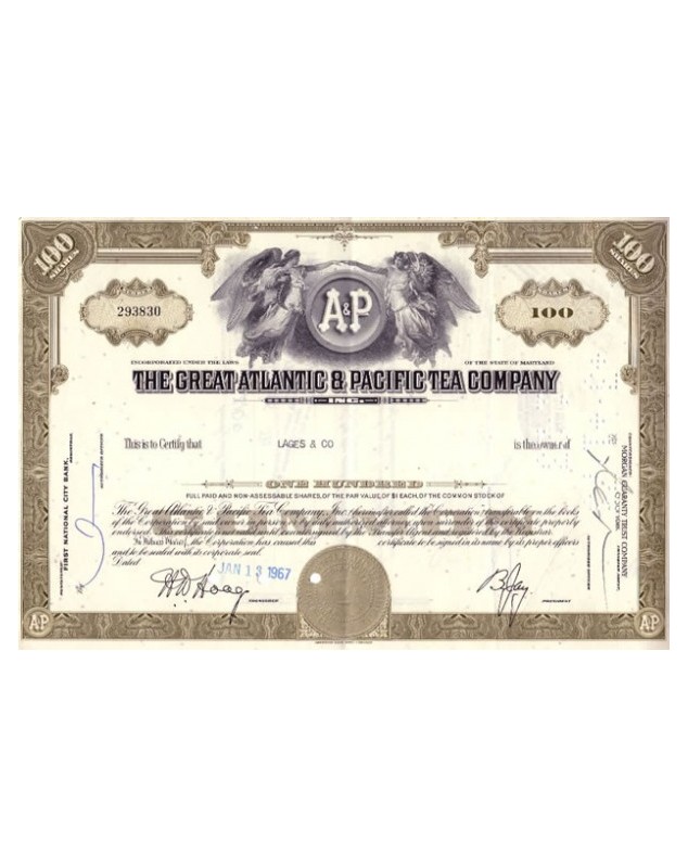 Cert. of 100 Shares of 1$ each - State of Maryland 1967