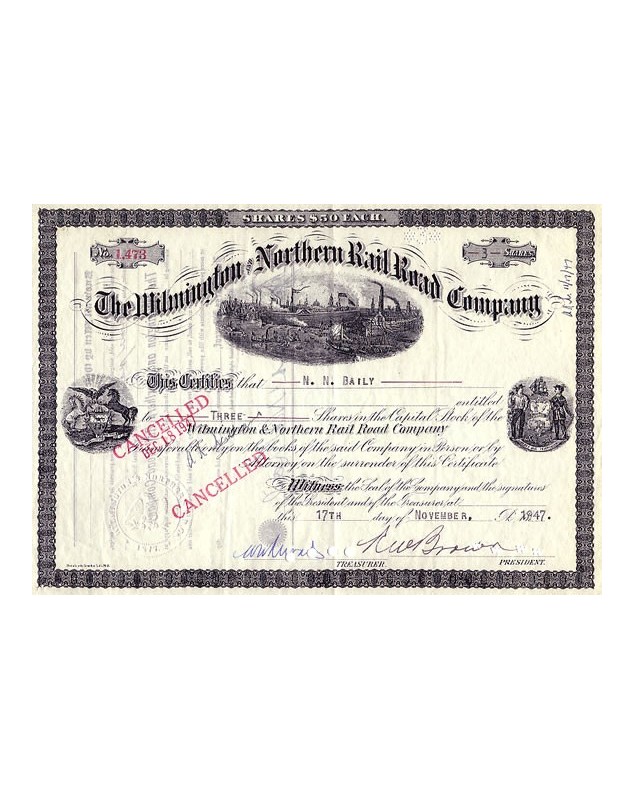 Cert. of Shares of 50$ each - Cancelled - 1947
