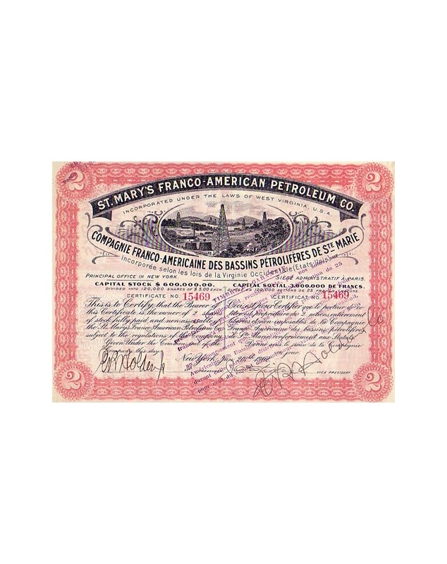 Cert. of 2 Shares of 25F/$5 each - New York 1902