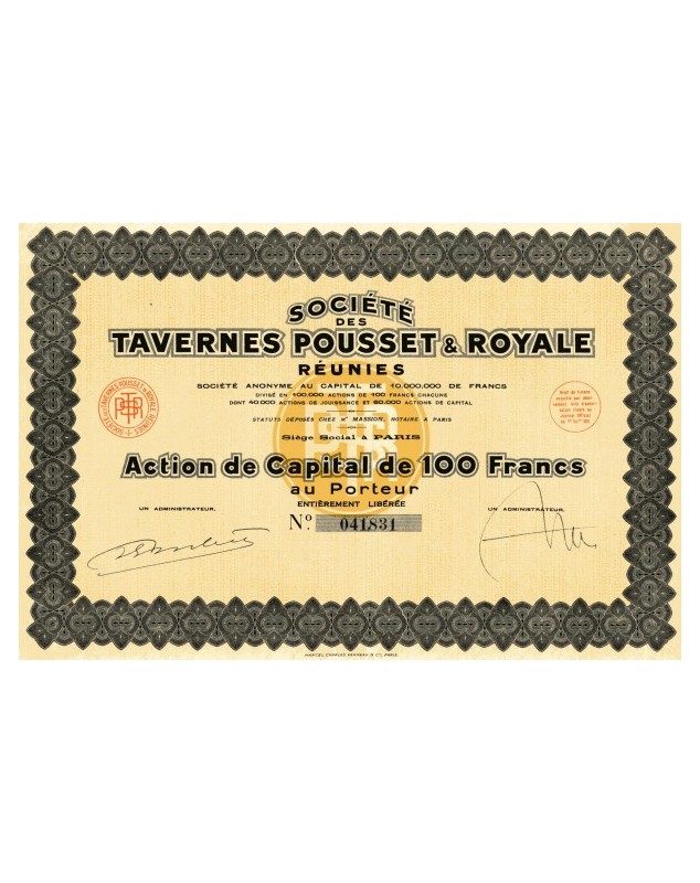 Sté des Tavernes Pousset & Royale réunies