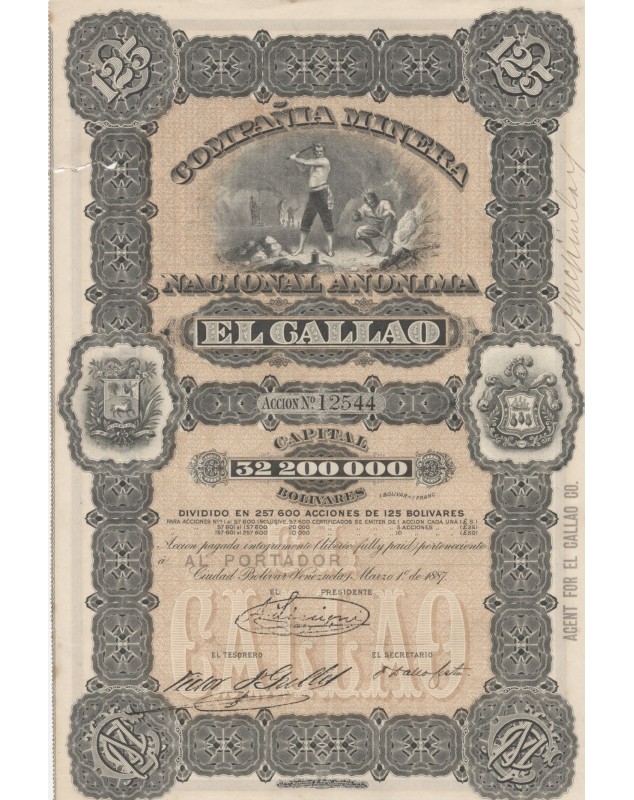 Compañia Minera Nacional Anonima El Callao. 1887 (125 Bol)