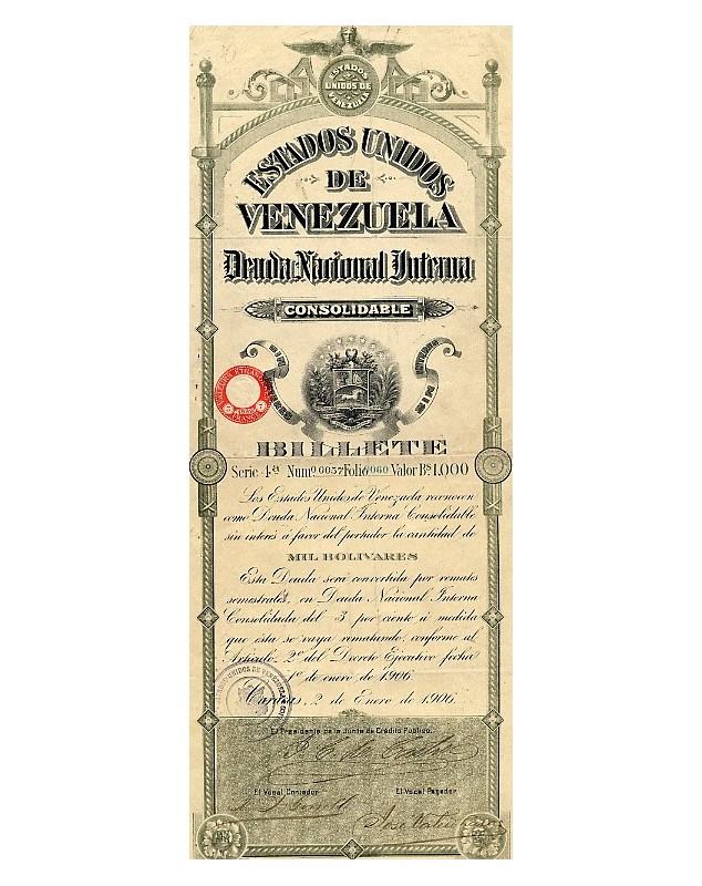 Estados Unidos de Venezuela - Deuda Nacional Interna. Serie 4a 1906