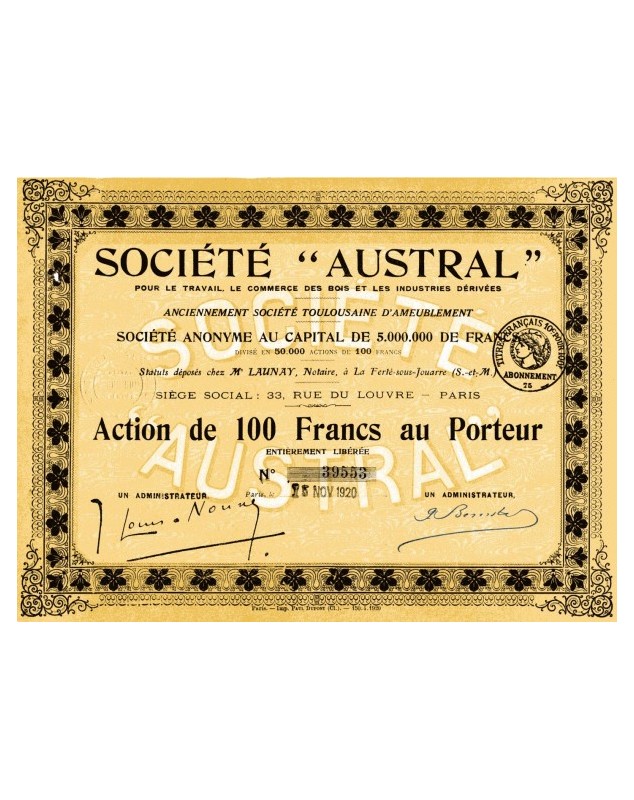 Sté ''AUSTRAL'' pour le Travail, le Commerce des Bois et les Industries Dérivées