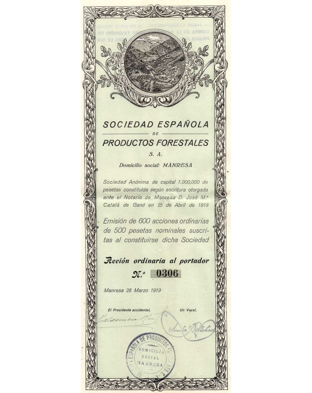 Share of 500 Pesetas - Manresa 1919