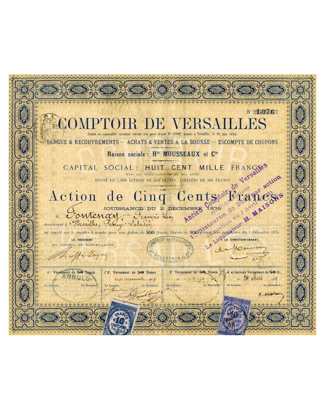 Comptoir de Versailles. Hte Mousseaux et Cie