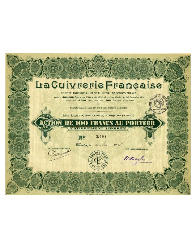 Share of 100F - Mantes 1920/1925