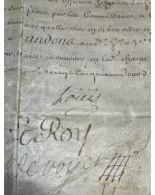 Prix 280,00 €Document autographe exceptionnel de Louis de Bourbon, Comte de Vermandois, fils de Louis XIV et Amiral de France, daté de 1674. Ce manuscrit rare représente l'un des documents les plus anciens de cette collection, fournissant une preuve directe de la signature et de l'autorité d'un prince du sang royal durant le règne du Roi-Soleil. Le Comte de Vermandois était une figure prominente de la noblesse française et du leadership militaire du XVIIe siècle.