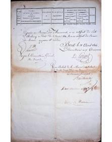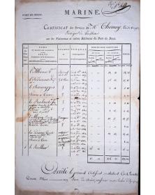 Complete set of naval service records documenting the career of Louis-Ange Themoy, ship lieutenant and midshipman, spanning from 1810 to 1816. These official documents were issued in Cherbourg on March 1, 1810, January 1, 1813, and January 3, 1814, bearing signatures from the Naval Inspector, the Marine Commissioner responsible for Armaments, and the Principal Marine Commissioner. An additional service record from Brest dated August 1, 1816, is included. These documents provide exceptional detail about French naval careers during the Napoleonic Wars and the transition to the Bourbon Restoration navy, representing invaluable genealogical and military history resources for researchers and collectors of French maritime heritage.