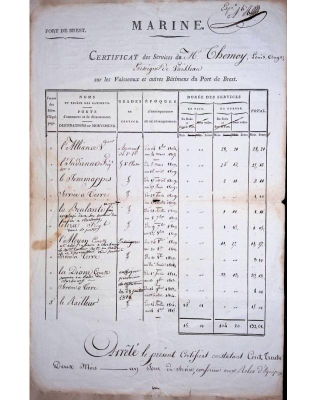 États des services maritimes 1810-1816 - Louis-Ange Themoy Enseigne de vaisseau - Marine française