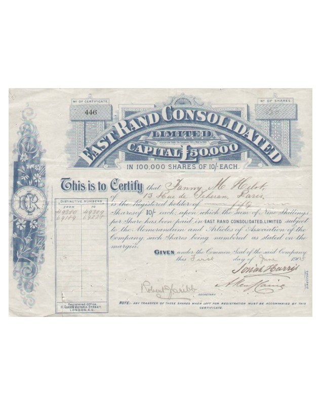 Titre d'Action de 10 Shillgs ch. - Londres 1905