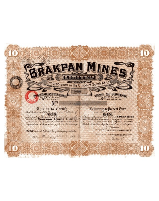 Titre de 10 Actions d'1£ chacune - Londres 1935