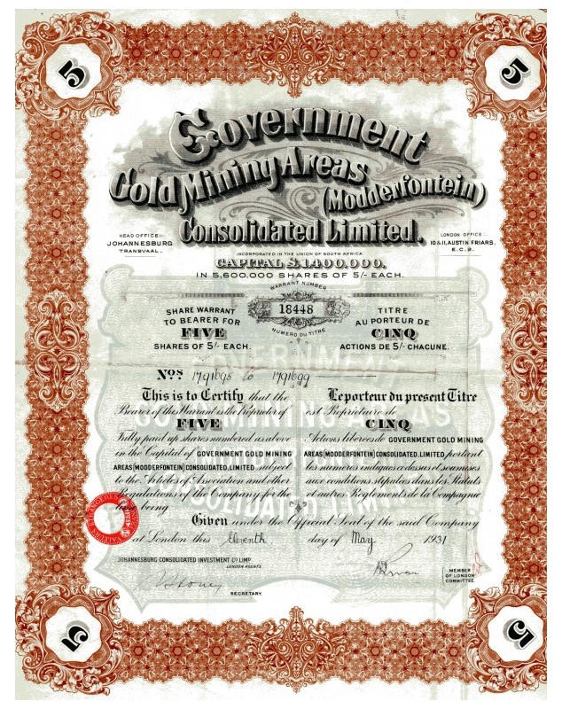 Government Gold Mining Areas (Modderfontein) Consolidated Ltd