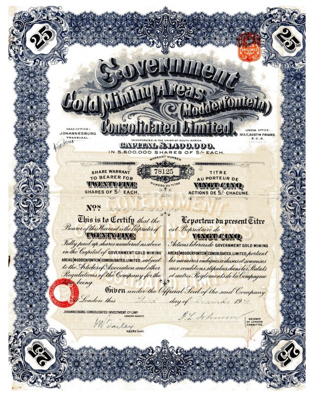 Government Gold Mining Areas (Modderfontein) Consolidated Ltd