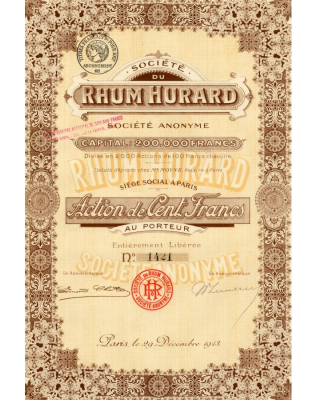 Action au porteur de 100 francs émise à Paris en 1913.