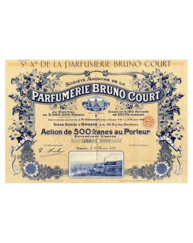 La parfumerie Notre-Dame des Fleurs est fondée à Vence en 1812, par les frères Paulin et Bruno Court. Sébastien Merle (père d'Antoine et Augustin Merle, apprentis, puis, collaborateurs de l'usine de Vence) acquiert en 1872 le fonds de commerce et le transfère à Grasse. Le 2 décembre 1878 il cède son affaire à ses deux fils qui décident de l'exploiter sous la raison sociale "Bruno Court".