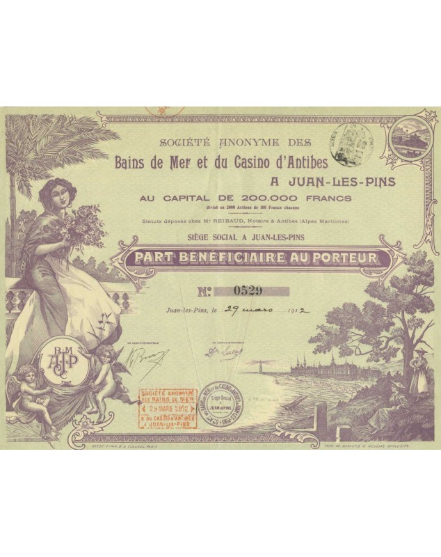 Part Bénéficiaire émise à Juan-Les-Pins en 1912.