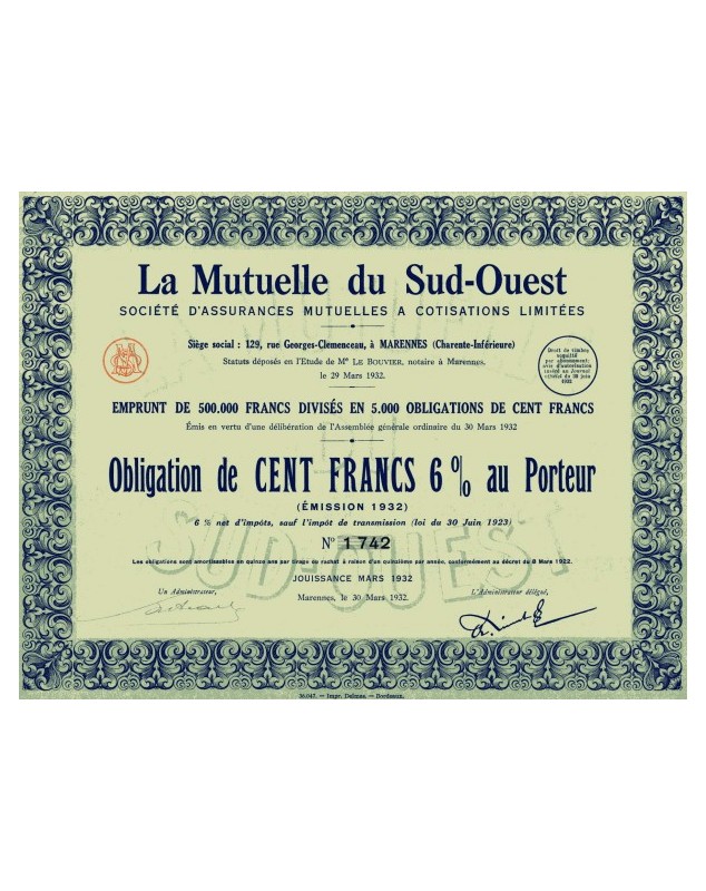 Obligation de 100F 6% - Marennes 1932