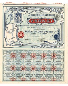 Titre magnifiquement décoré dans le style Art Nouveau, avec tous ses coupons.