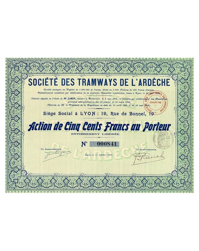 Action de 500F - Lyon 1912