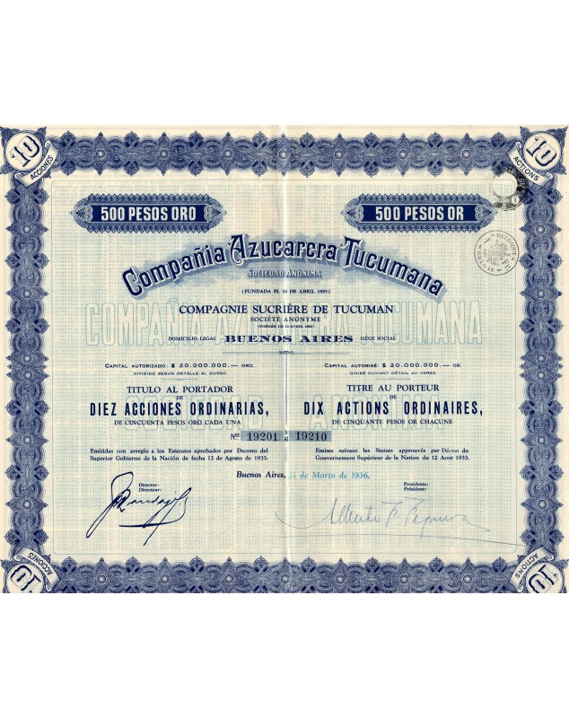 Titre de 10 Actions of 50 Pesetas chacune - Buenos Aires 1936