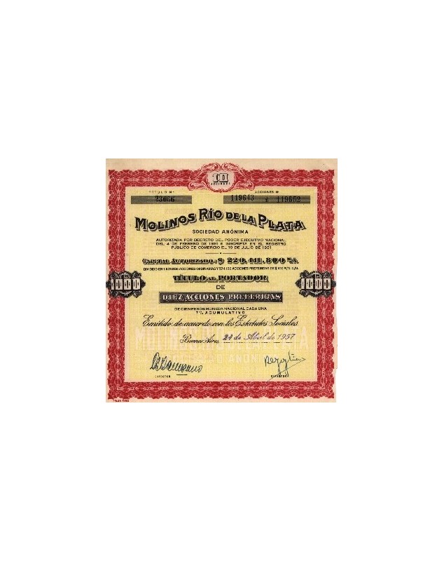 Titre de 10 Actions Préf. de 100 Pesos - Buenos Aires 1957