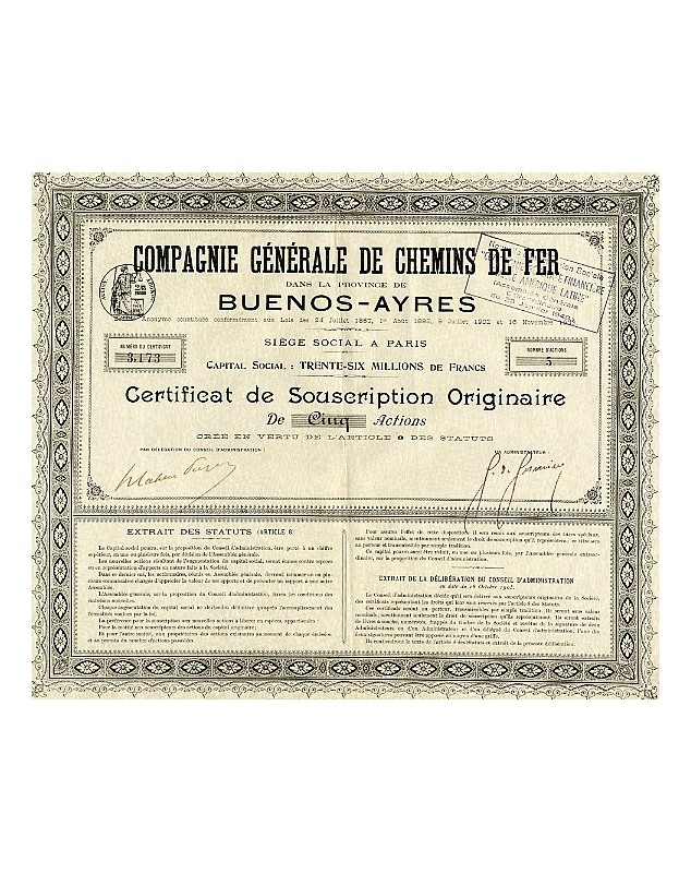 Cie Générale de Chemins de Fer dans la Province de Buenos-Ayres
