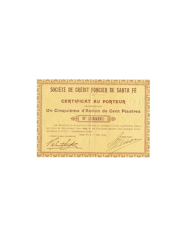 1/5ème d'action de 100 Piastres - Santa Fé 1896