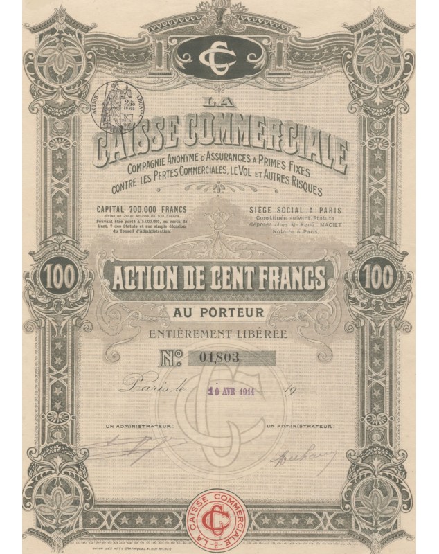 Assurances générales La Famille, Cie d'Assurances Dotales pour Favoriser le Mariage et les Naissances30,00 €