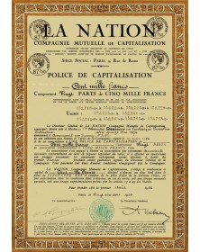 Certificat de 15 Actions nominatives de 500F chacune - Paris 1939