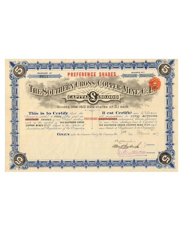 Titre de 5 Actions Préférentielles d'1£ chacune - 1907