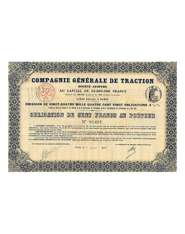 Obligation de 100F - Paris 1914