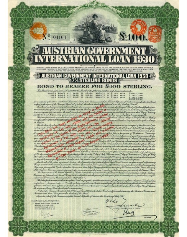 Gouvernement Autrichien. Austrian Government International Loan 1930