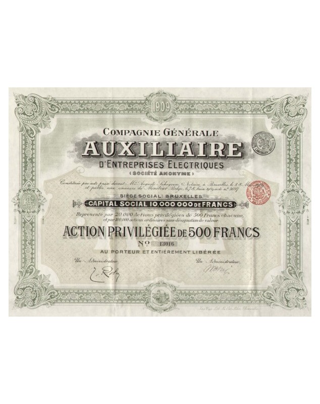 Action privilégiée de 500F - Bruxelles