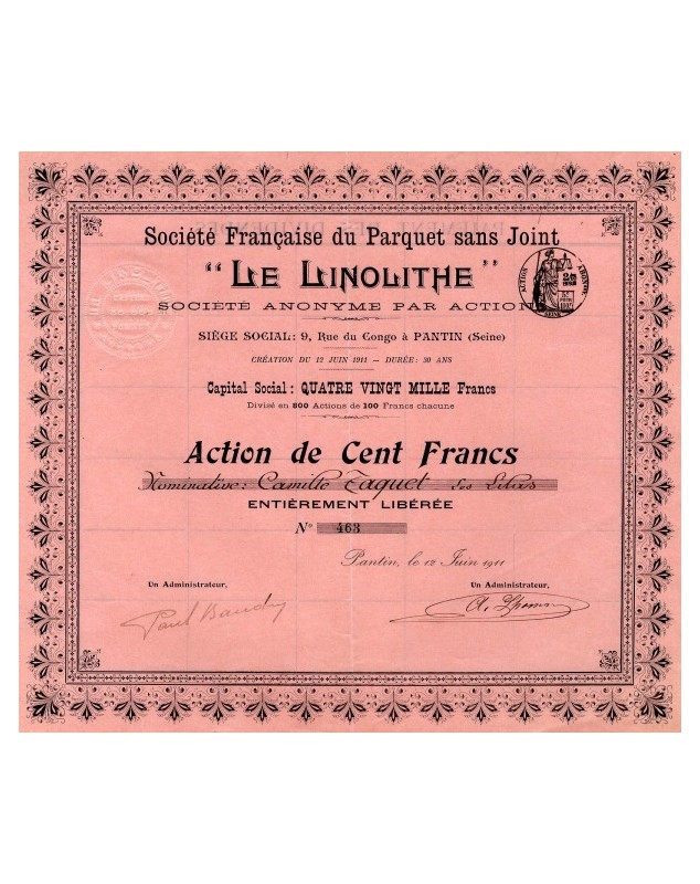 Sté Française du Parquet sans Joint "Le Linolithe"