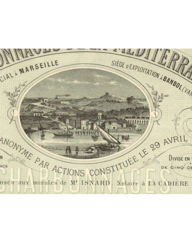 Société constituée en 1881, siège social à Marseille et siège d'exploitation des mines de charbon à Bandol.
