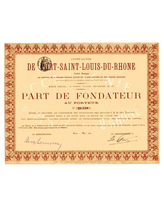 Part de Fondateur datée de Paris 1880.