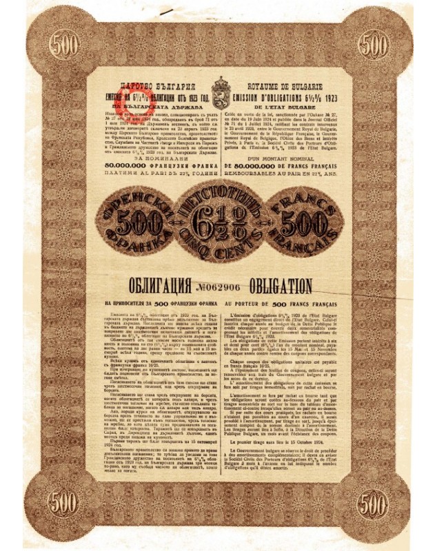 Royaume de Bulgarie - Emprunt 6,5% 1923 de l'Etat Bulgare