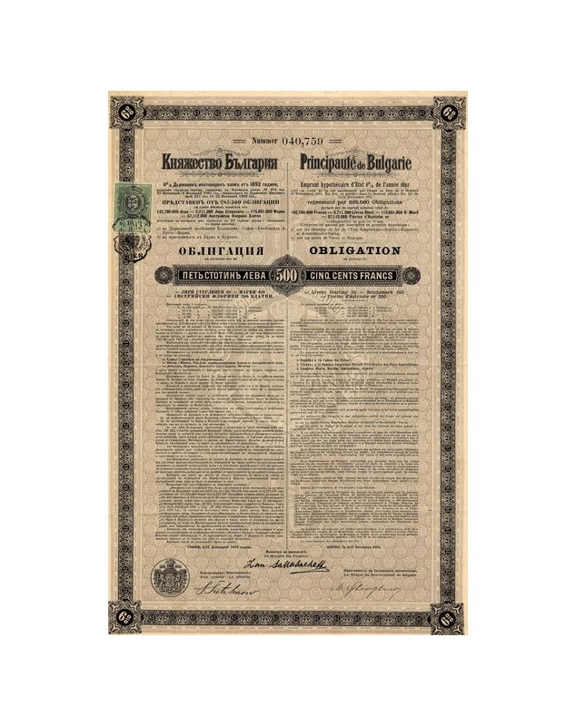 Principauté de Bulgarie - Emprunt Hypothécaire 6% 1892