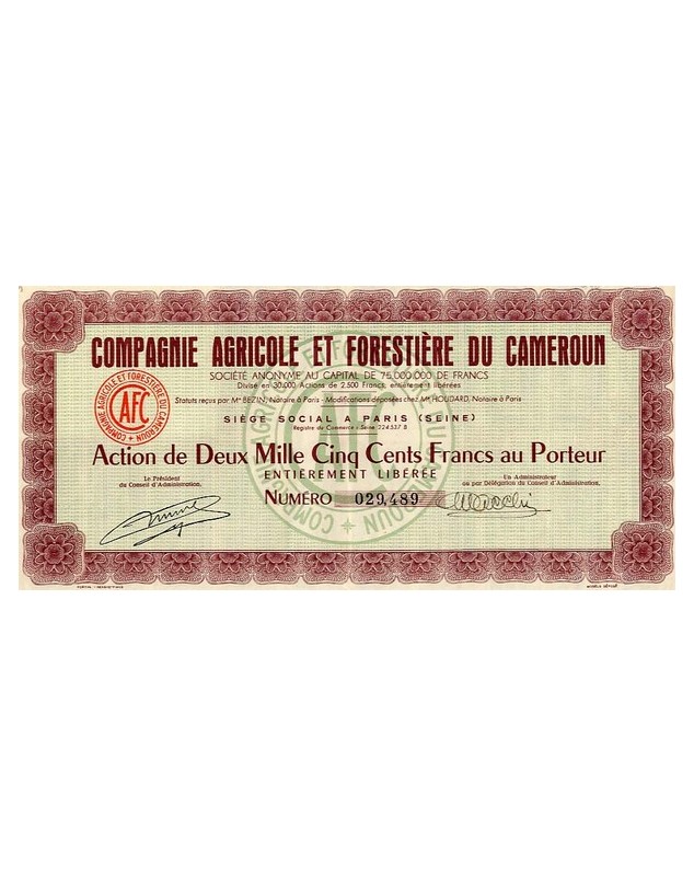 AEF (Afrique Equatoriale Française) Compagnie Française du Haut & Bas-Congo, S.A. Agricole, Industrielle & Commerciale de l'Afrique Équatoriale50,00 €