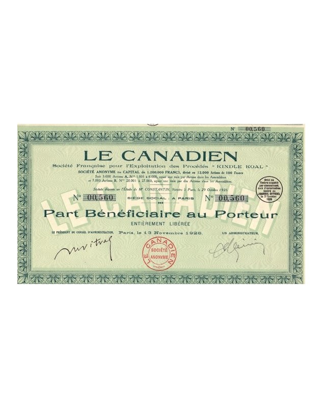 Part Bénéficiaire -Paris 1926