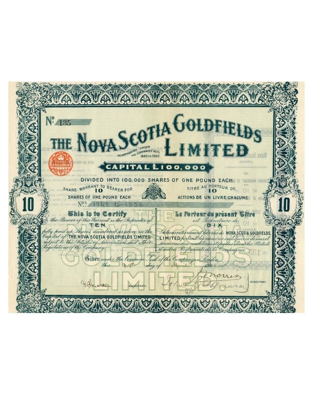 Titre de 10 actions de 1£ ch. - Londres 1908