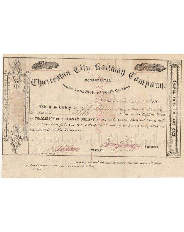 Titre d'Actions de 50$ - Charleston 1867 ou 1868