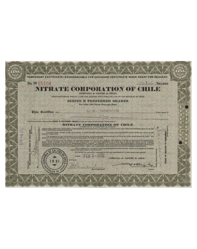 Pref. Action de 100 Pesos, série B - New-York 1932