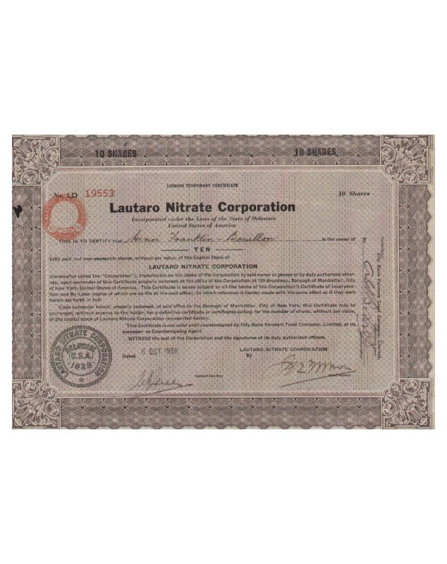 Certificat temporaire de 10 Actions du Stock - Londres 1930