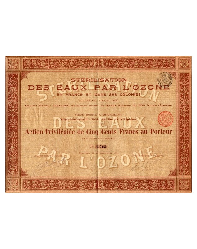 La stérilisation, appelée « ozonisation » (parfois « ozonation » ou « ozonification »), consiste à mettre en contact l'eau avec de l'air électrisé, qui produit de l'ozone (O3).