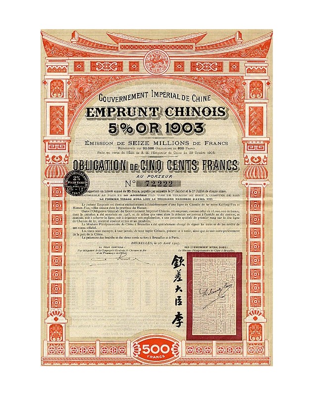 Gouvernement Impérial de Chine - Emprunt Chinois 5% Or 1903