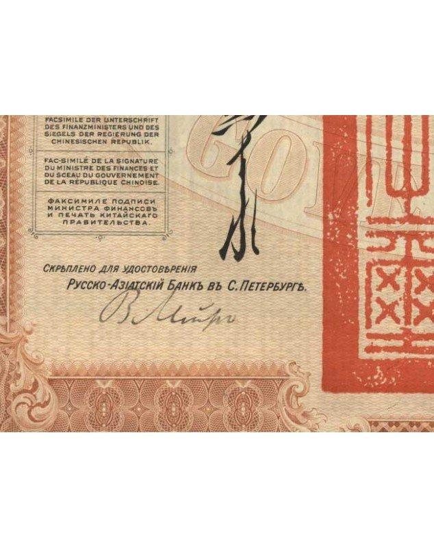 The Chinese Government. Emprunt de l'Etat Chinois 5% Or 1913 de Réorganisation (Banque Russo-Asiatique). Avec Form TFEL-2
