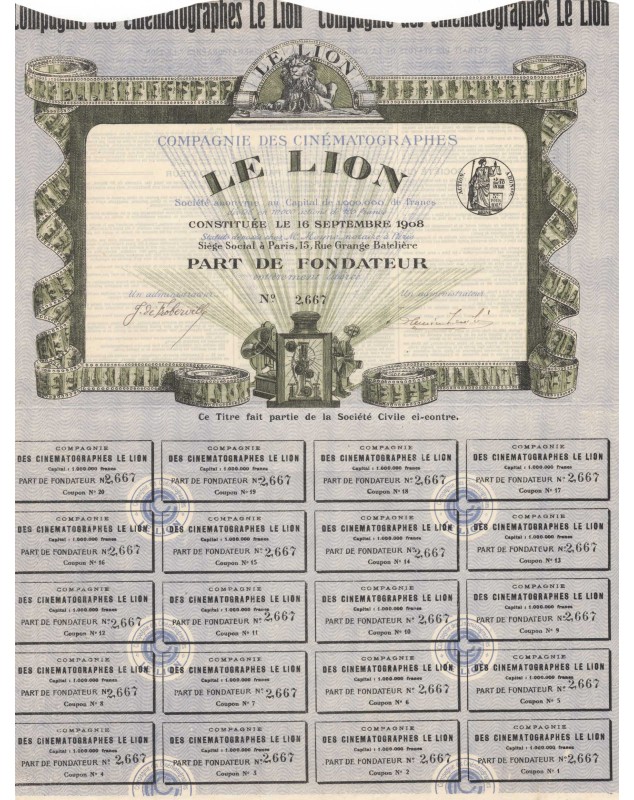 En 1907, des aristocrates engagent des fonds dans une affaire cinématographique qui devient en 1908 la Compagnie Le Lion. Les frères Pierre, Jules et Lucien de Froberville possèdent 51% des parts de la société. Pierre est président du conseil d'administration, Roger de Baulaincourt est directeur commercial. Théophile Michault, ancien directeur des Cinémas-Hall est directeur technique et gère le studio du Pré-Saint-Gervais, créé par la société Galand & Cie.