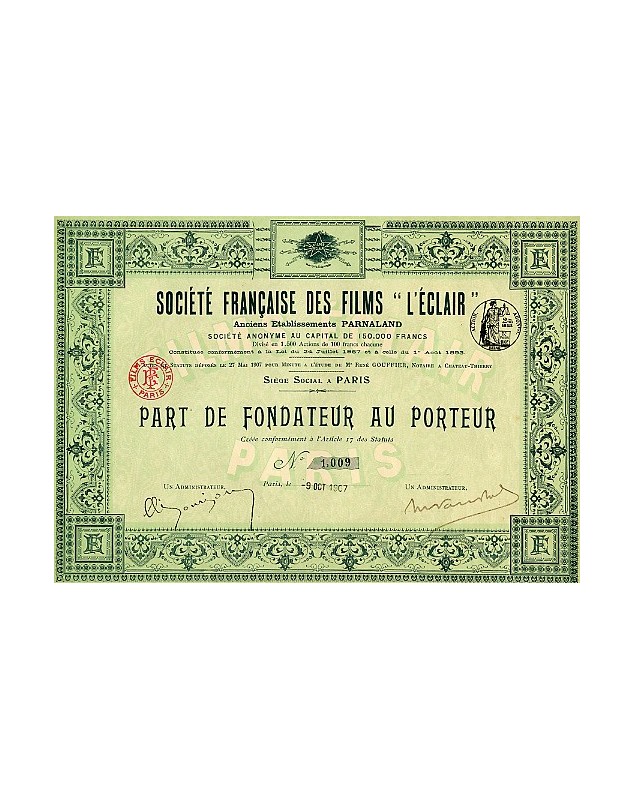 En 1907, la société anonyme Films l'Eclair, anciens établissements Parnaland, est créée par Jourjon et Parnaland.
